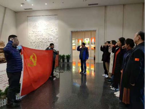 11月22日上午,支部全体党员继续赶往桑植县洪家关参观贺龙纪念馆、贺龙故居。贺龙纪念馆由八个展厅组成,陈列着两把菜刀闹革命、南昌起义、创建革命根据地、抗日战争、解放战争、国家体育事业奠基者、国家军队重要领导人、贺龙同志永远活在人民心中、中小员工思想教育展厅几大块内容。贺龙故居和纪念馆是全国爱国主义教育示范基地和革命传统教育基地。法管公司教工支部全体党员在贺龙元帅纪念馆前庄严地重温入党誓词,郑重表达“时刻铭记党员身份、发挥先锋模范作用、全心全意为人民服务,为实现中华民族伟大复兴不断奋斗”的决心。