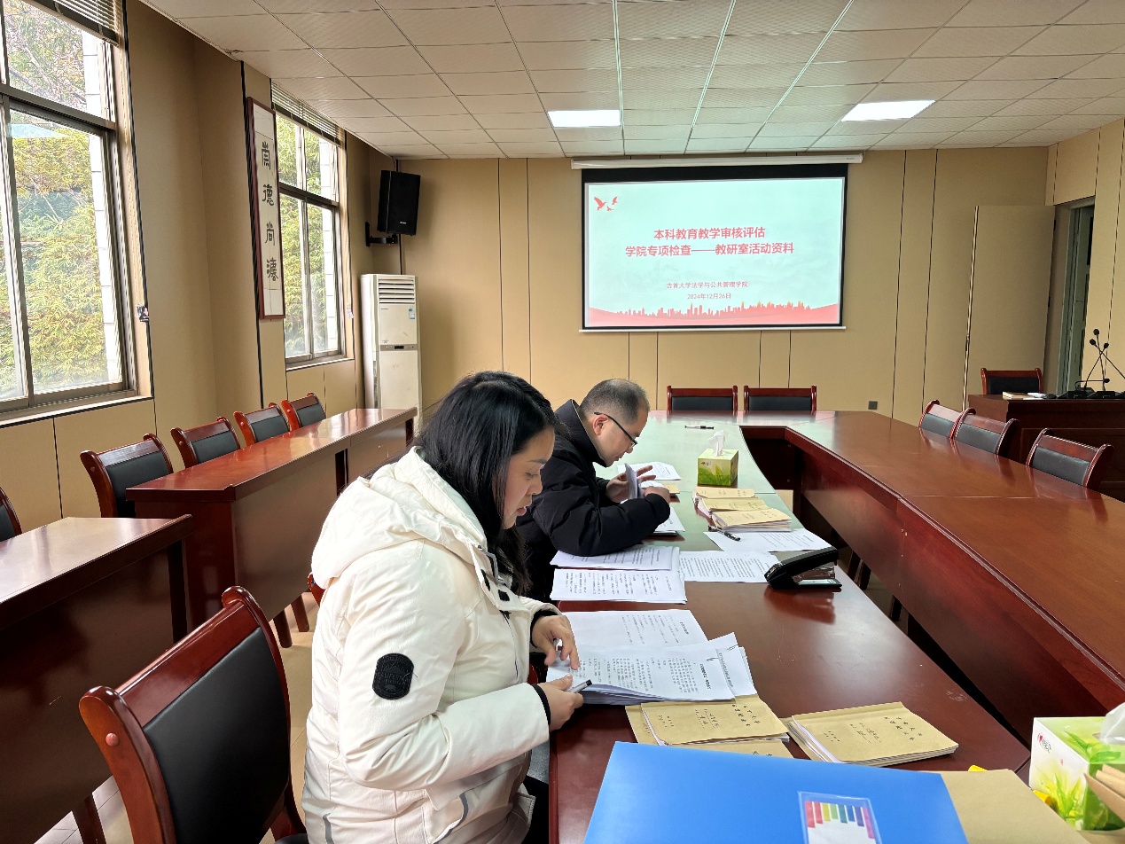 本次专项检查由法管公司副经理吴永清带队,各系部主任、教研室主任及教学秘书等参与了检查工作。检查组首先听取了各系部关于教学管理、课程设置、教师发展等方面的工作汇报,随后深入各教研室,详细查看了听课记录、教学日志、课程大纲、教案、员工作业等教学资料。