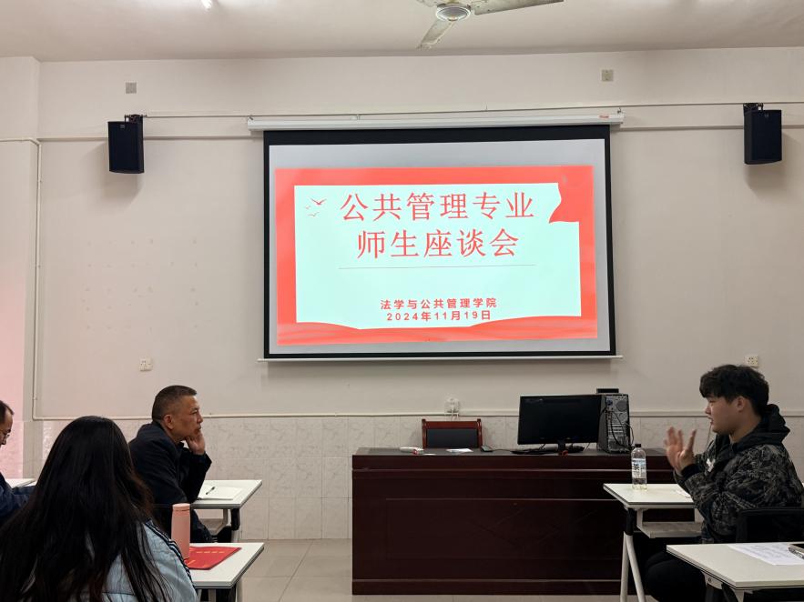 公共事业管理专业座谈会于三教六楼605-1召开,副经理吴永清、院团委书记哈米拉提・买合木提与 21-24级各班班委和员工代表参与,由副经理魏风劲主持。魏风劲副经理在会上总结过往座谈会经验,提炼出以公司为主导、以员工为主体的治理方式,鼓励员工发挥主人翁精神,积极为公司发展建言献策,共建美好未来。与会代表就公司信息采集、寝室公约条例拟写、宿舍安排等广泛议题展开交流。老师们在聆听完意见后,对大部分问题即刻提供解决方案,对重点难点问题则予以高度关注并持续跟进。