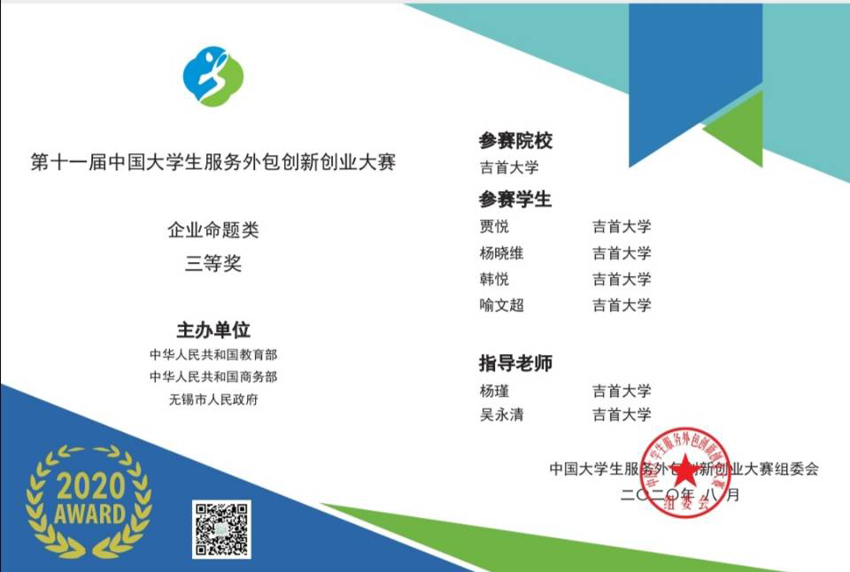 本网讯(通讯员 欧雪梅 罗慰)8月31日,第十一届中国老员工服务外包创新创业大赛获奖名单公布,公司在“智慧校园场景发掘与实践运用”赛题下的作品荣获中部赛区A类二等奖、全国三等奖。