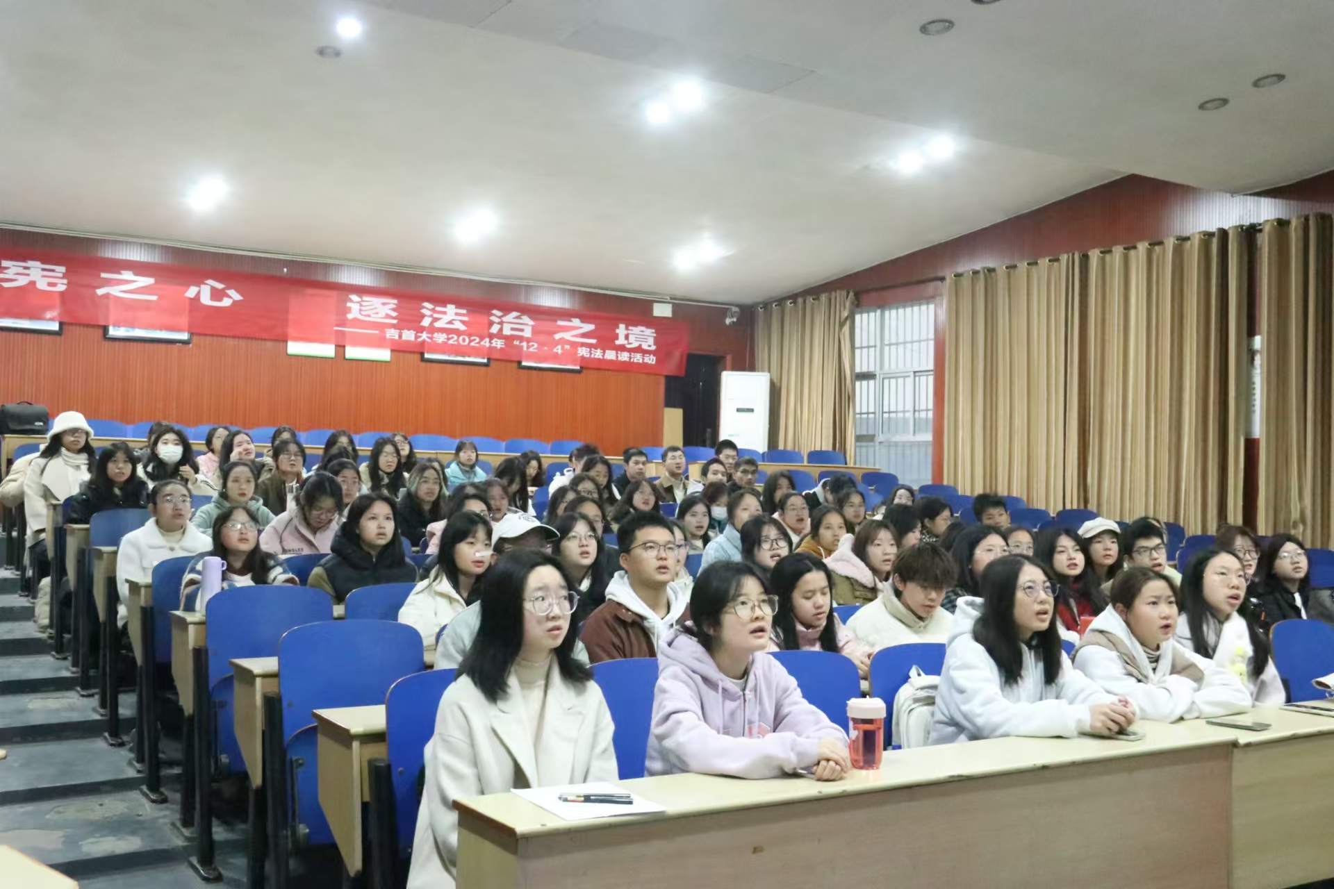 宪法晨读活动作为12·4国家宪法日系列普法活动的重要组成部分,通过诵读和演唱的形式,充分调动了同学们学习宪法的积极性,有效提高了同学们宪法知识的储备量,同时对宪法精神也有了更加深入的领会。相信同学们会在以后的学习生活中将所学宪法知识传播出去、将理念和精神弘扬出去,为营造尊法、学法、守法、用法的法治氛围贡献力量。