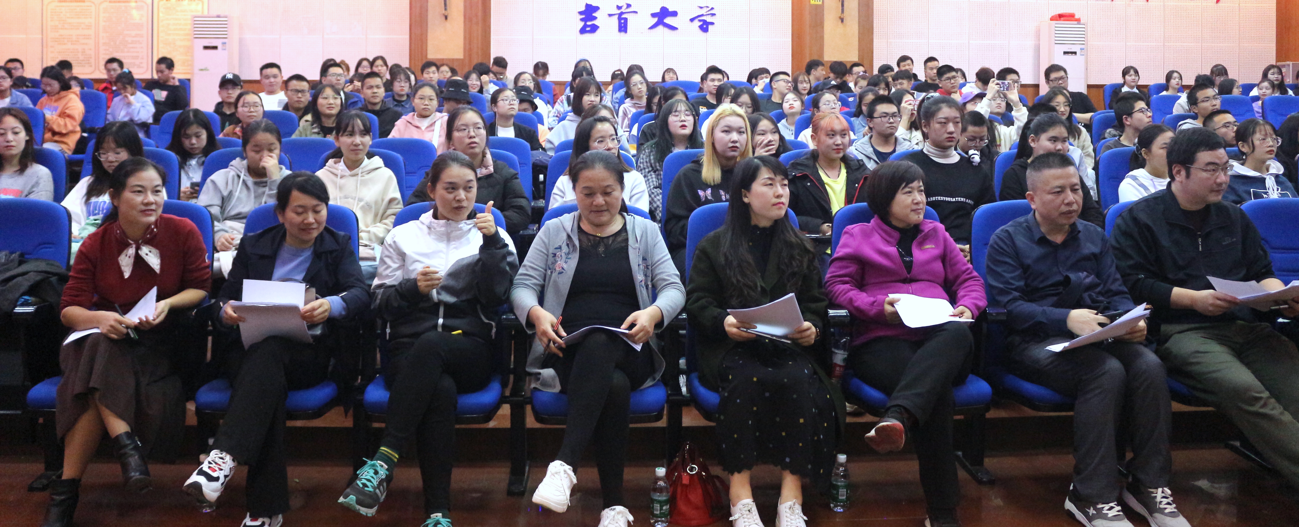 各班负责人依次上台展示。在规定时间内,各班汇报人从班级建设、学风展示、卫生环境、特色活动等方面作评述,集中展现了各班级积极向上的精神风貌。进入才艺展示环节,各班以多样的形式呈现出具有本班特色的表演,体现出各班的风彩与活力,让评委老师和观众耳目一新。