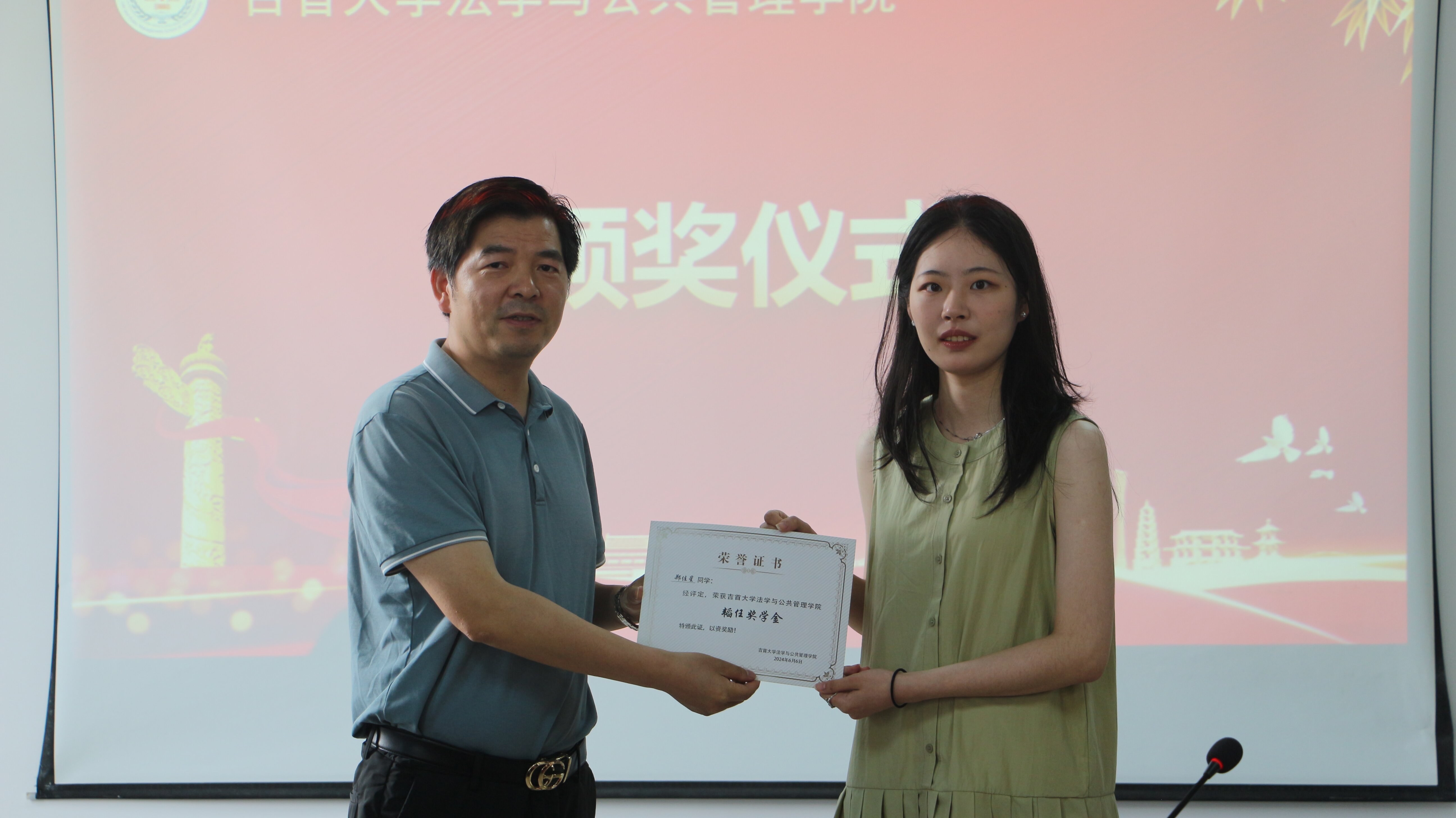 彭献忠宣读了《关于表彰首届bv伟德国际1946“韬任奖学金”获奖员工的决定》,并鼓励同学们以坚定的信念和不懈的努力,在未来的学习和科研道路上不断攀登新的高峰。