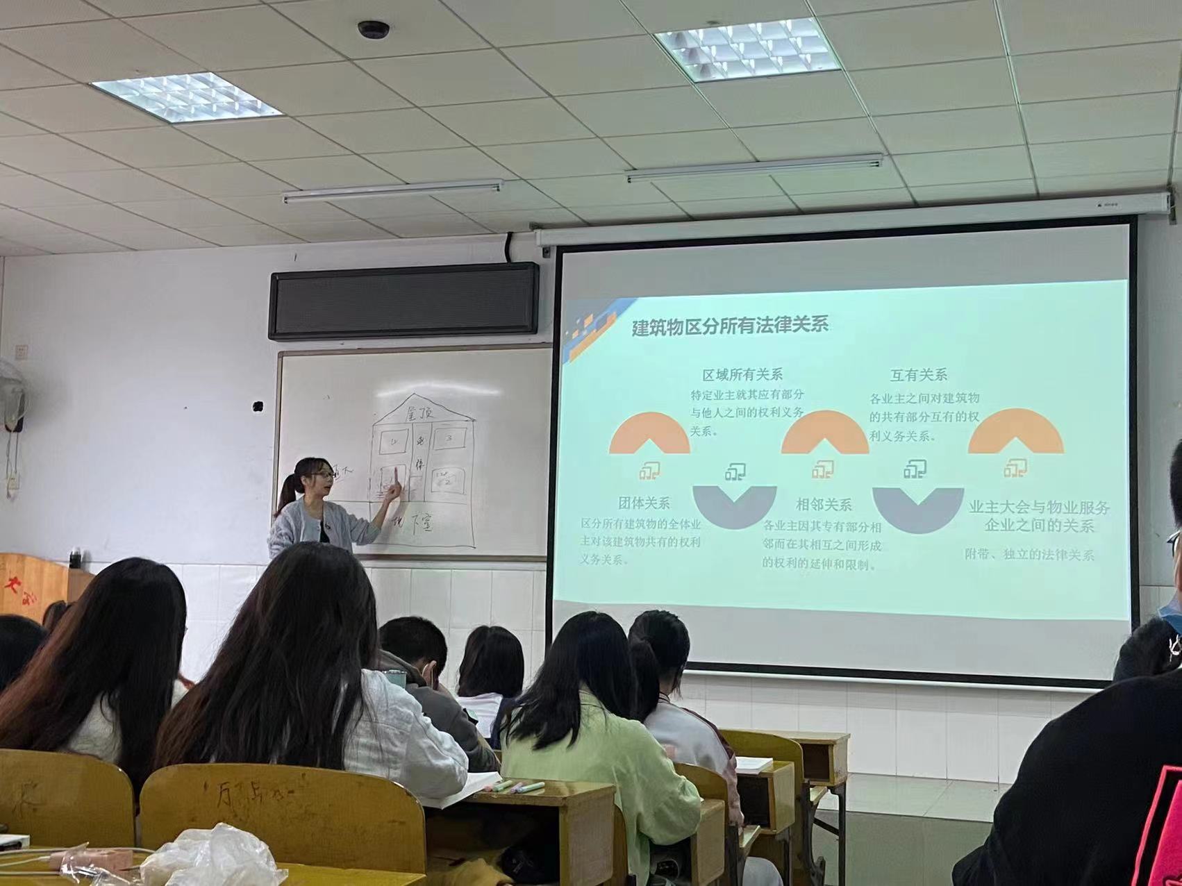 本次活动,听评了甄骏老师的《侵权法学》,肖旭东老师的《城市公用事业管理理论与实践》,谢根瑞老师的《公共危机管理》,谭林锋老师的《物权法学》,陈南希老师的《文化产业创意与策划》等五位老师的五门课程。老师们根据课程教学需要,运用讲授法、案例教学法等教学方法,融入思政元素,结合多媒体教学技术,认真组织课堂教学,启迪同学思考,突出重点、突破难点。