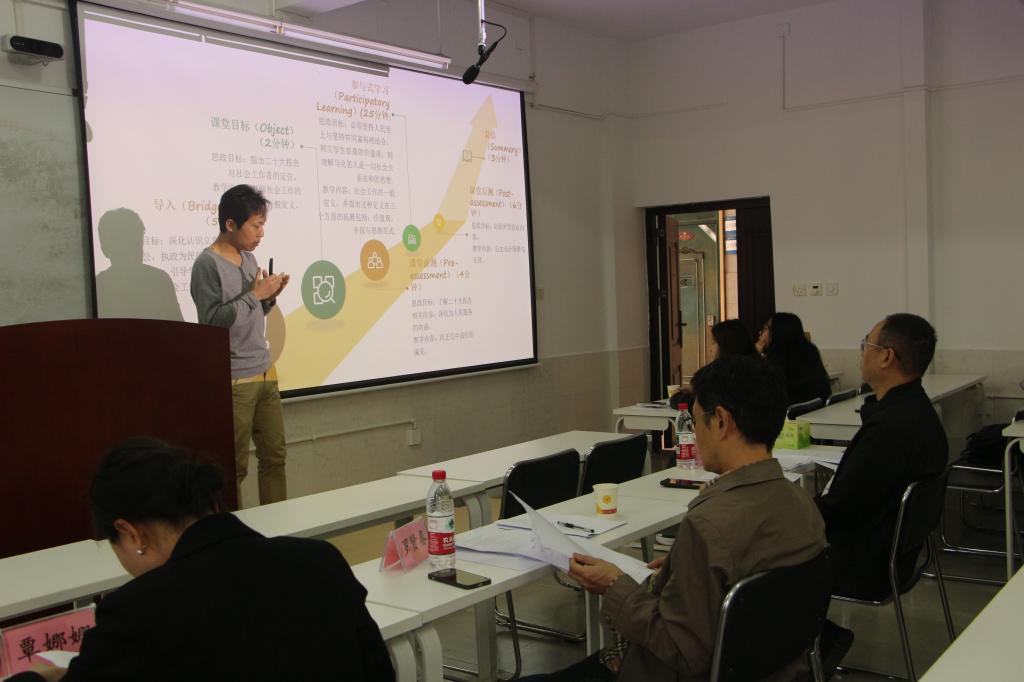 比赛开始,董碧聚焦 “理解社会工作”,独树一帜地融合两种教学模型,秉持以员工为中心的理念,从作业设计思维着手,借助日常情境启发员工思考社会工作的价值,并巧妙地将“人民至上”与共同富裕理念融入其中 ,为该领域教学提供了新思路。