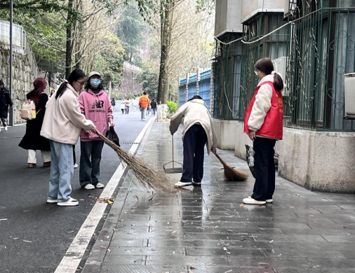 志愿者们手持扫帚、撮箕等清洁工具,对竹林小路上的落叶、塑料袋等进行清扫,活动过程中断断续续地下着小雨,但志愿者们的激情丝毫不减,每人都以认真的态度、高涨的热情投入到活动中,将竹林小路清扫干净,进一步提升了校园环境的整洁度。