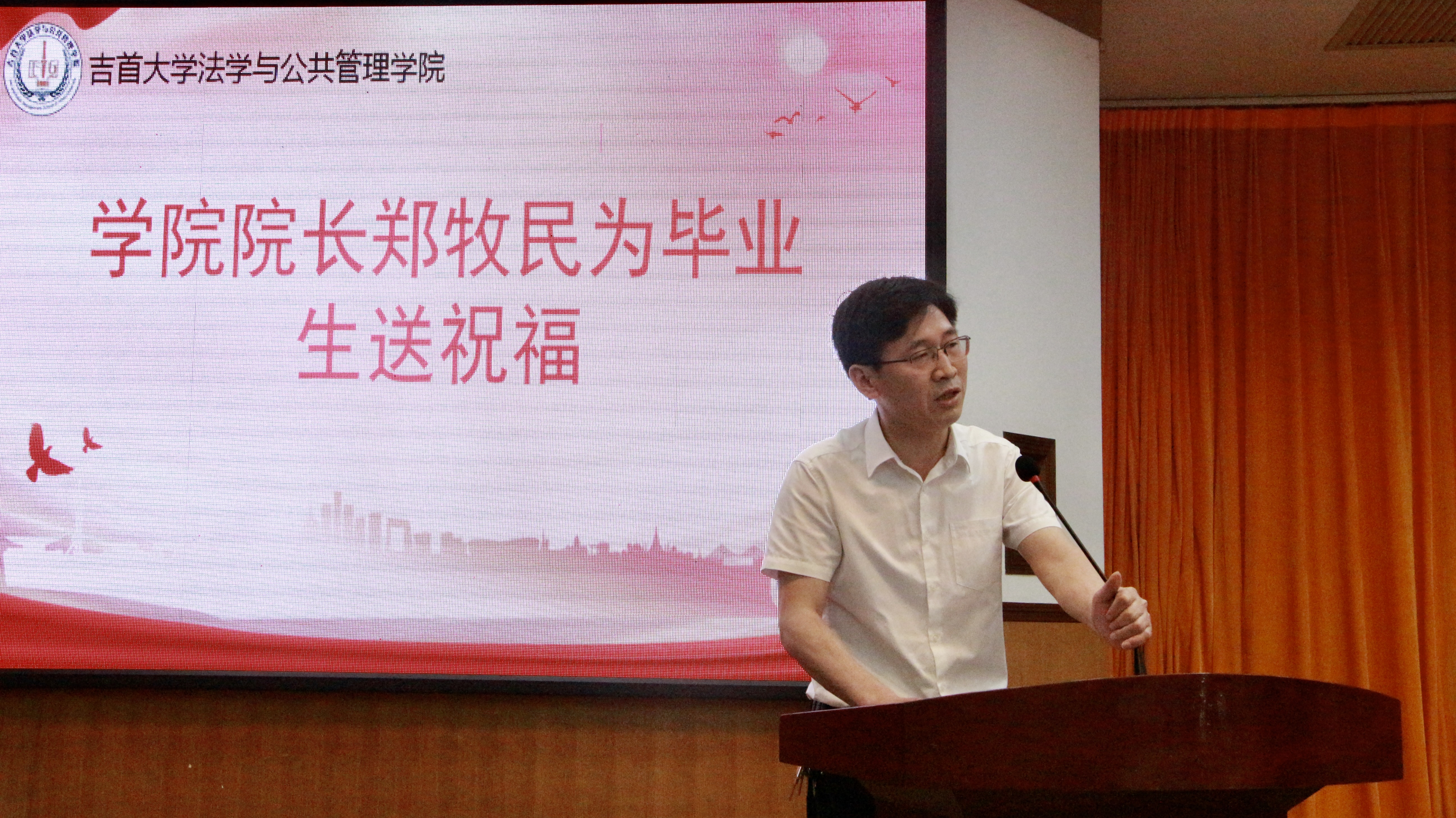 第四句:做一个讲感情的人,饮水思源,爱院荣校。我真心希望,当你们走出校园,收获成功之时,不要忘记自己是吉大法管人。无论你身在何地,无论你从事何种职业,都希望你能关注母院、宣传母院、支持母院,牢记“崇德尚法、善治为公”的院训。诗人泰戈尔曾说:“无论黄昏把树的影子拉得多长,它总是和根连在一起的。”