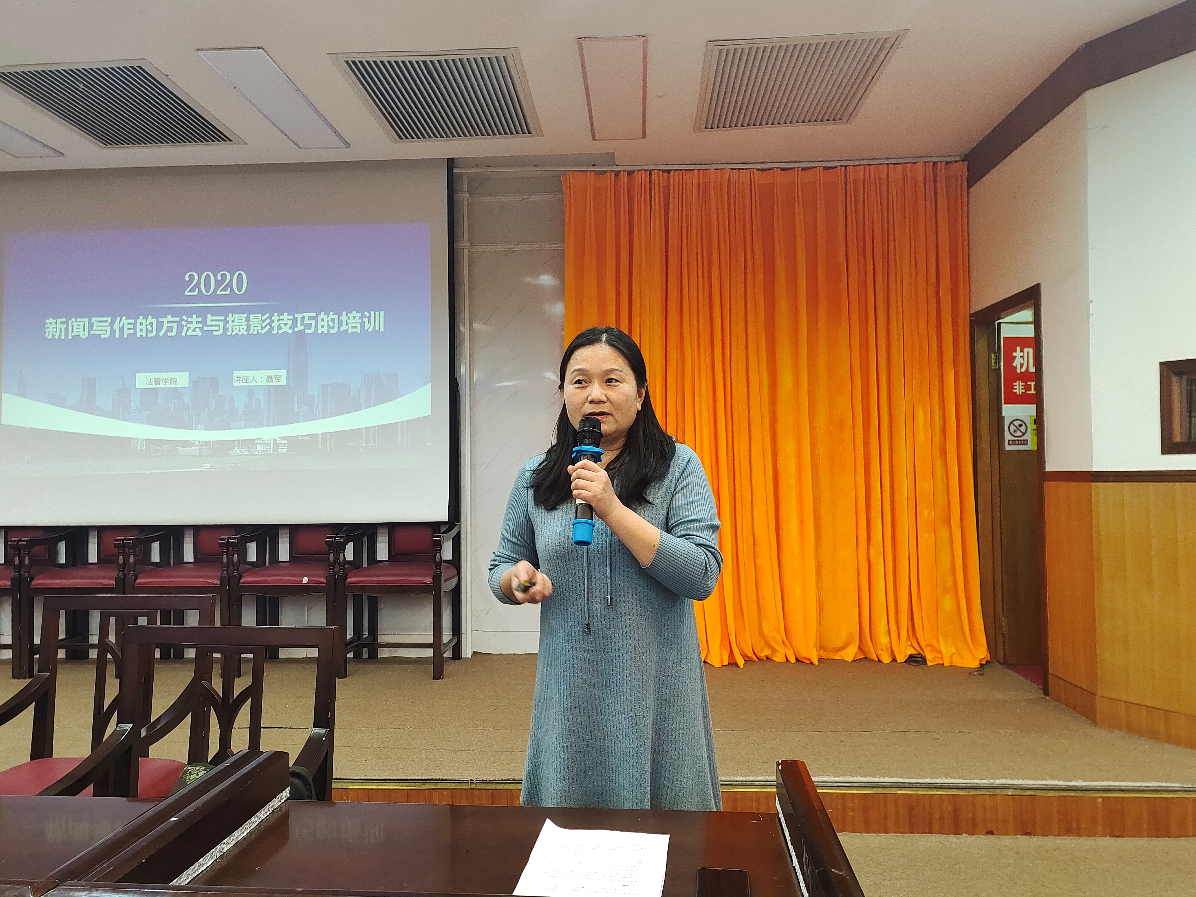聂军则从新闻写作的方法与摄影技巧两个方面展开讲述。首先,她对新闻写作的标题准确概括主题、导语按照倒金字塔结构布局、背景补充适当、主体以时序结构布局谋篇、结尾形式多样等五个部分做了详细阐述,还提醒员工写稿前要充分做好功课、出稿及时。