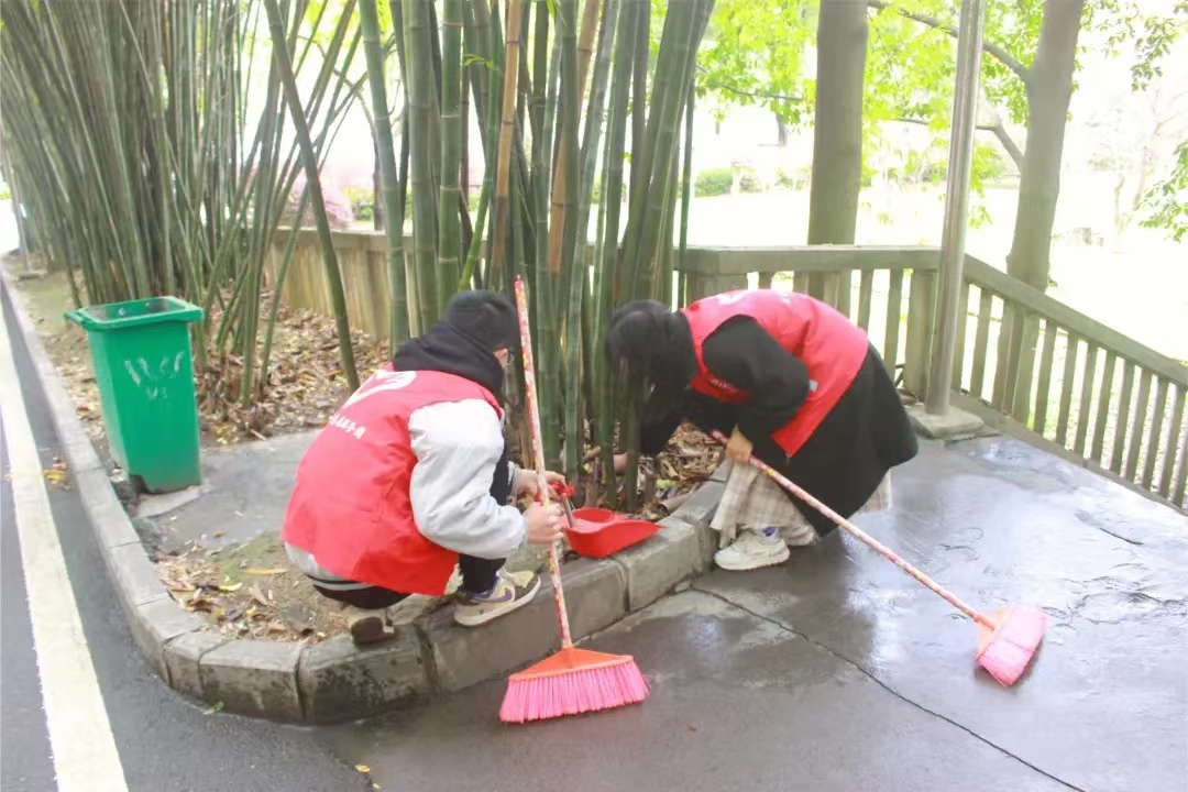 活动中,志愿者们手拿扫把、簸箕、垃圾袋等工具,清扫校园路面的落叶及绿化带内的白色垃圾、废弃物等,认真检查不放过任何卫生死角。大家听从指挥,互帮互助,默契十足,虽然累在其中,但也其乐融融。