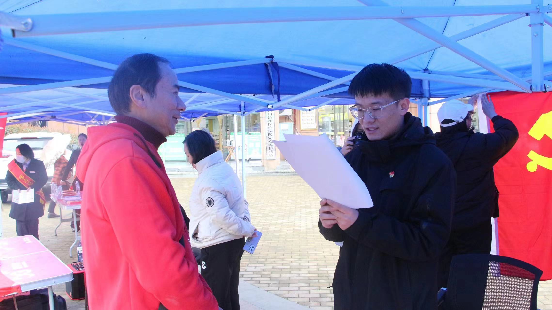 (志愿者解答群众疑惑)