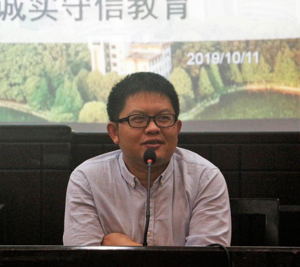 (本网讯 陈睿珍 郭高维)为进一步推动新生对大学学业生涯的思考与规划并提升其对校规校纪的认知,10月11日晚,公司在模拟法庭召开专题讲座。公司学工办主任段武城主讲,2019级全体新生参加。