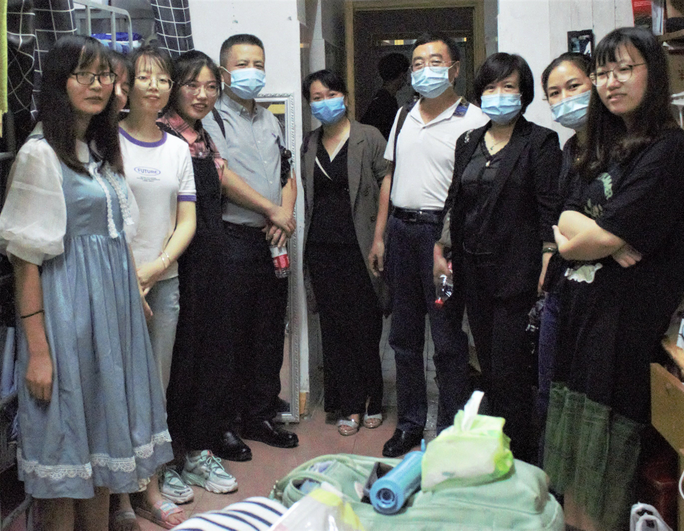 本网讯(通讯员 欧雪梅 罗慰 何静)为全面了解疫情后首次返校员工的入住情况,关爱员工的身心健康,9月6日晚,公司党委书记彭献忠,经理吴文平,党委副书记陈蓉,副经理魏风劲及学工办各位老师和系主任、班主任老师深入公司员工寝室看望返校员工。