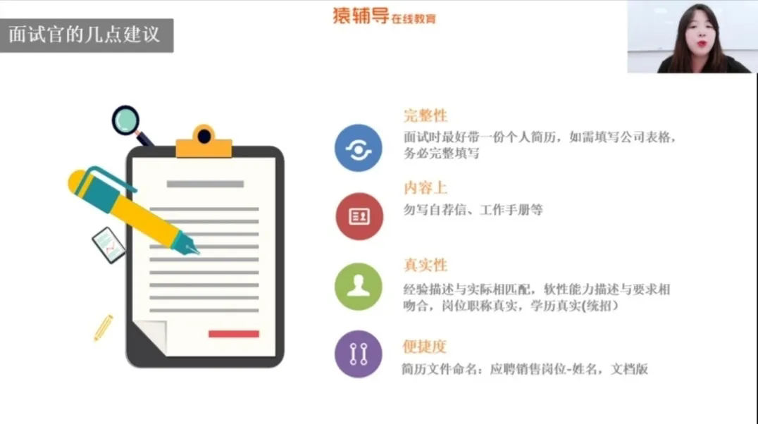 本网讯(通讯员 楚文成 罗慰 何静)为帮助广大应届生解决求职过程中简历制作的难题,提升求职技能,加大成功应聘的几率,8月12日下午,公司邀请猿辅导平台开展线上求职简历制作指导讲座,公司应届生参加讲座,此次讲座由校园招聘负责人陈雨情主持。