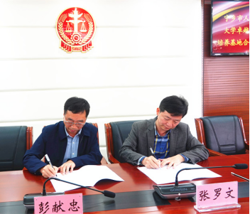 随后,双方还签署了《实习基地合作协议书》,并为基地挂牌。宁乡法院政治部部分同志与彭献忠一行在院院合作、员工实践教学等方面进行了深入地沟通与交流。参加座谈会的还有2004届法学专业优秀毕业生、现宁乡综合审判庭员额法官戴龙文。