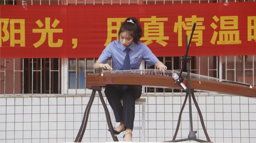 户外的“才艺表演与互动”环节中,服刑人员带来了充满气势的苗鼓表演和极具土家族特色的摆手舞,检察院代表为我们带来了优美的古筝独奏《浏阳河》。此外,同学们也带来了民族舞蹈表演、吉他弹唱和二胡独奏等表演,歌曲《我相信》更是带动了全场氛围。最后,才艺表演随着服刑人员传递温暖的手语操《感恩的心》结束。随后,检察院干警、公司员工与服刑人员分别派出代表进行了友谊篮球赛,球场上各队伍精彩的表现令人连连称赞。随后,所有参与人员在“心怀阳光,情暖高墙”主题横幅上签字并合影留念。最后,部分同学参观了州人民检察院驻吉首监狱检察室,了解了驻监检察室的功能和基本任务。